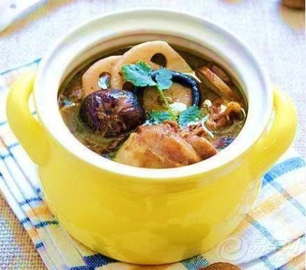 【功用】莲藕养血补血、止咳生肌,香菇补脾健体、润肺化痰,二者搭配鸡肉做成汤品,既可促进食欲,又能滋补气血、润肺止咳。